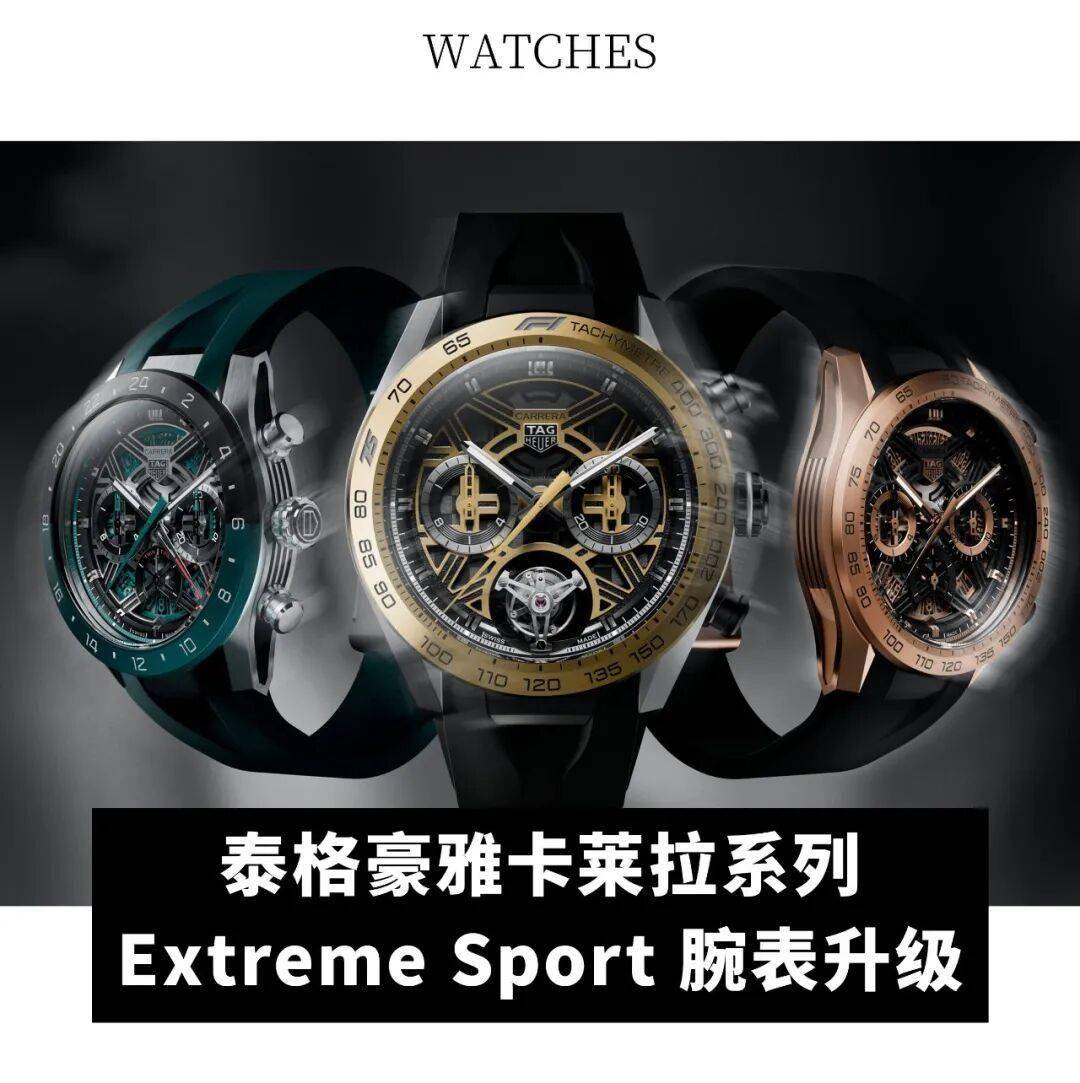 泰格豪雅于 2025 年持续革新卡莱拉系列 Extreme Sport 腕表,呈现两款新作——泰格豪雅卡莱拉系列 Extreme Sport 双时区计时码表与泰格豪雅卡莱拉系列 Extreme Sport 玫瑰金款计时码表,以创新功能设计与突破性美学语言,续写赛车精神的时计传奇。泰格豪雅卡莱拉系列 Extreme Sport 双时区计时码表以突破性功能设计再创制表新境,首次搭载两地时功能,以鲜明设计语言重塑时区美学。品牌首次采用单块双色陶瓷打造一体式表圈,成就制表工艺与美学设计的双重突破。全新推出的泰格豪雅卡莱拉系列 Extreme Sport 计时码表表壳与表圈均采用 18K 玫瑰金一体铸造,玫瑰金表壳经磨砂与抛光工艺交替处理,光影流转间凸显了泰格豪雅卡莱拉系列标志性的几何线条。精美的润饰工艺不仅营造出鲜明的视觉对比与深邃层次感,更为时计轮廓注入雕塑般的张力。(Lee)