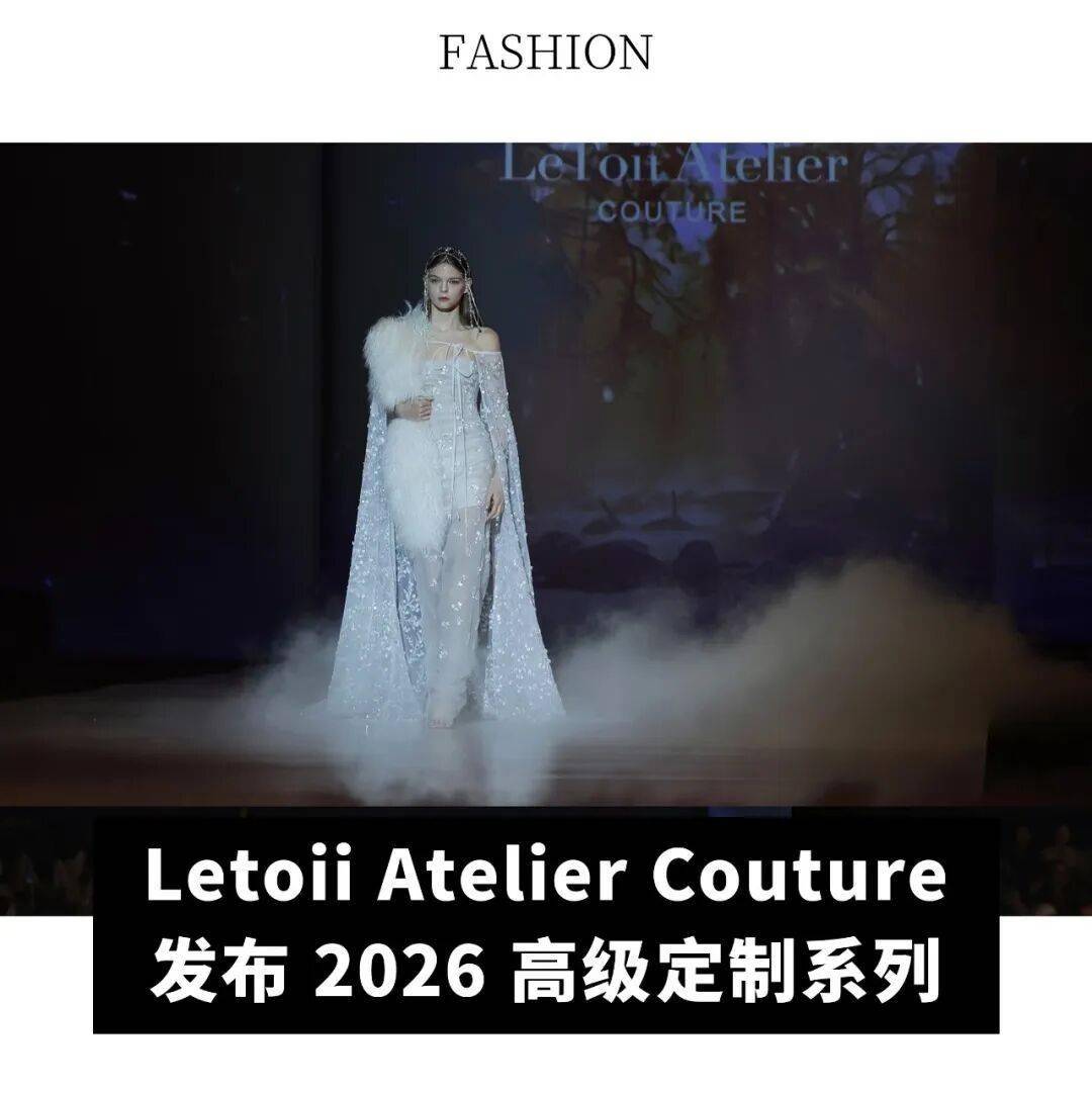 Letoii Atelier Couture 2026 高级定制系列,近期于上海时装周在诗意中登场。“Echoes Among Cedars 雪杉 吟”从森林的呼吸与静默中汲取灵感:层层轻透薄纱宛如雪地晨雾,手工缝珠蕾丝跟着光影闪烁,手工立体蕾丝花朵于冬日含蓄绽放,轻盈的手缝羽毛轻舞其间,彷彿雪杉间低语的秘密悄然流动。高级定制婚纱如晨光初醒,层层薄纱勾勒柔美轮廓,蕾丝若花瓣漫舞,如雪中花般幽微而坚韧。“A.W.A.K.E.N. 觉醒之境”系列以极致工艺重构记忆片段,彷若湖海交界处的夕阳粼粼,在静谧中缓缓生长。薄纱与剔透丝绸交织出若隐若现的幻境,珠钻与亮片闪烁光影,珍珠与水晶如星点缀其中。(Lee)