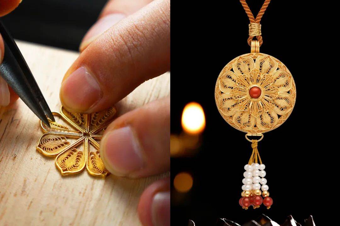 据宝兰品牌官方介绍,宝兰的“花丝镶嵌”工艺,曾吸纳了多位国家级非物质文化遗产“花丝镶嵌”技艺的传承大师及其弟子。在黄金法金工艺中,“花丝镶嵌”是拥有三千年历史的宫廷技艺,被誉为“燕京八绝”冠顶明珠。该工艺要求匠人将黄金千锤百炼、抽拔成丝,再以指尖演绎掐、填、攒、焊等数十道细腻工序,使细过毫发的金线在时光中交织、堆垒、编织成灵动繁复的立体纹样。目前,该品牌仅有三家线下门店,首店位于杭州大厦,2020年 6 月在杭州万象城开出第二家线月在深圳万象城开出华南首店,并拥有杭州宝兰黄金研究所,用于工艺研发与传承。
