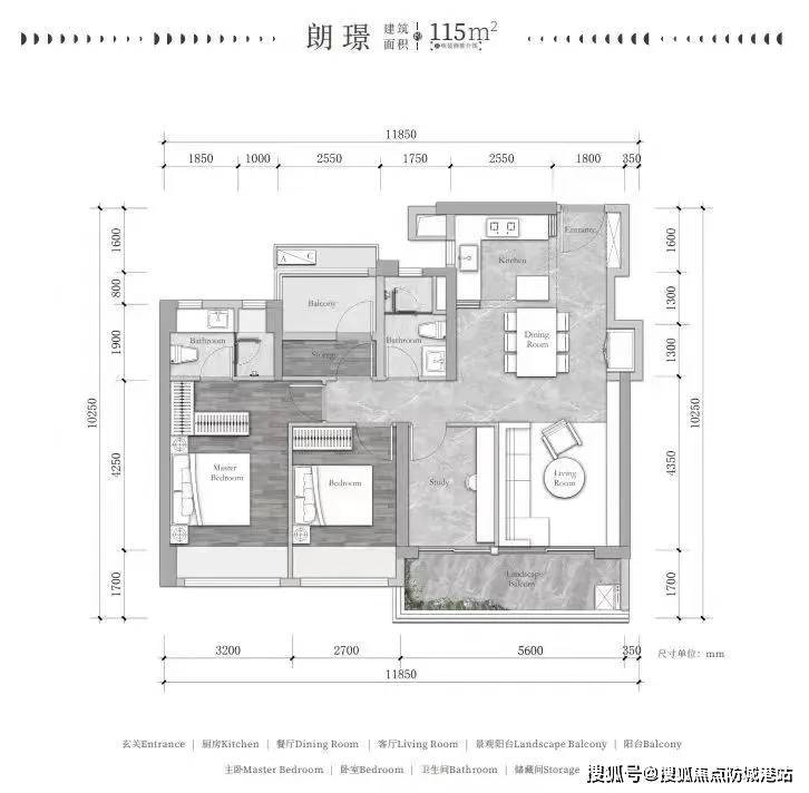 115㎡四居两卫户型:该户型在103㎡户型的基础上进一步提升了空间尺度,居住舒适度更高。客厅与餐厅相连,形成开阔的公共活动空间,适合家庭聚会或朋友宴请。主卧空间更加宽敞,独立卫生间配备浴缸,为业主提供了更加舒适的沐浴体验;衣帽间空间充足,能够满足业主的衣物收纳需求。三个次卧面积均较为宽敞,其中两个次卧带有飘窗设计,增加了室内的使用空间与采光效果。厨房连接生活阳台,方便日常杂物收纳与晾晒,提升了空间的实用性。该户型适合改善型家庭居住,能够满足家庭人口较多或对居住空间有更高要求的需求。